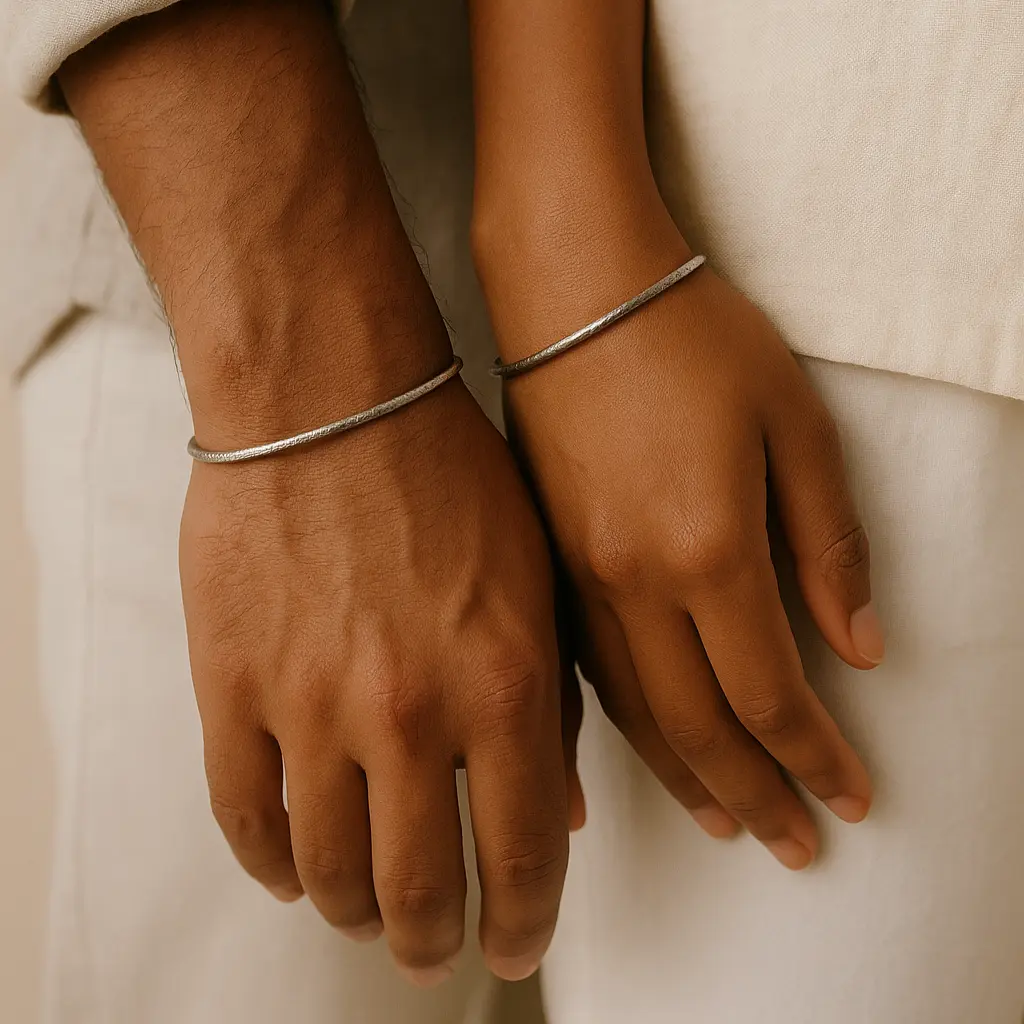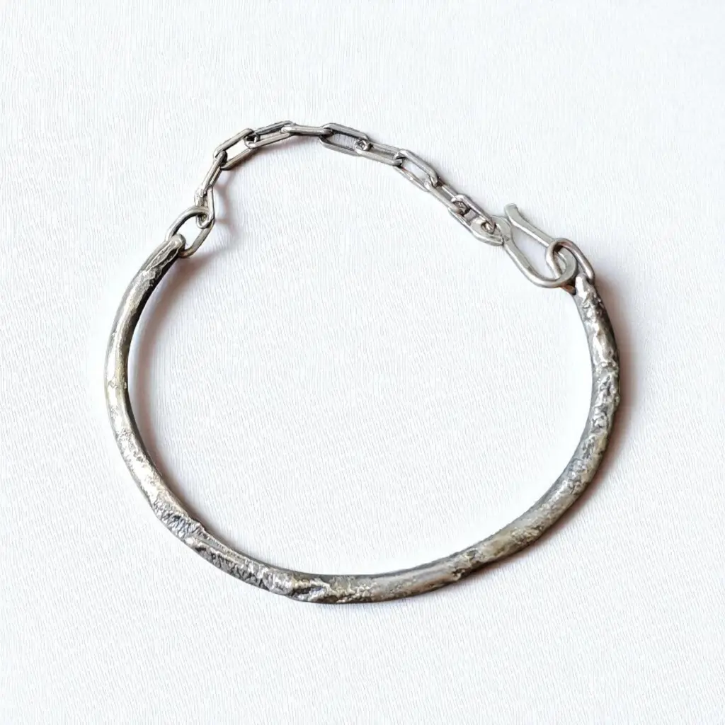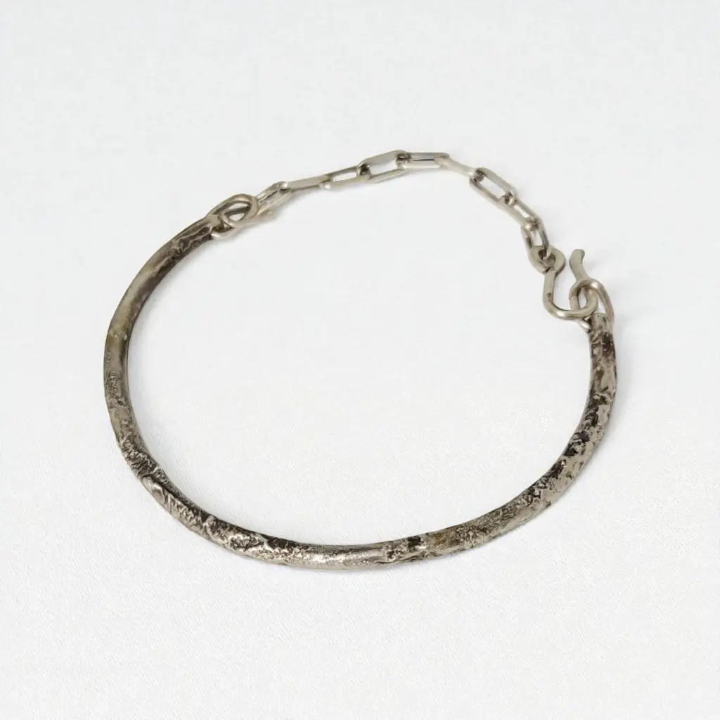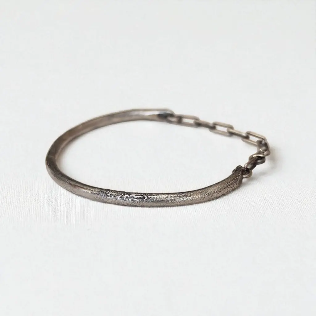 צמיד כסף סטרלינג 925 בעבודת יד, בעיצוב דק ומעודן עם טקסטורה טבעית המזכירה את פני הירח.