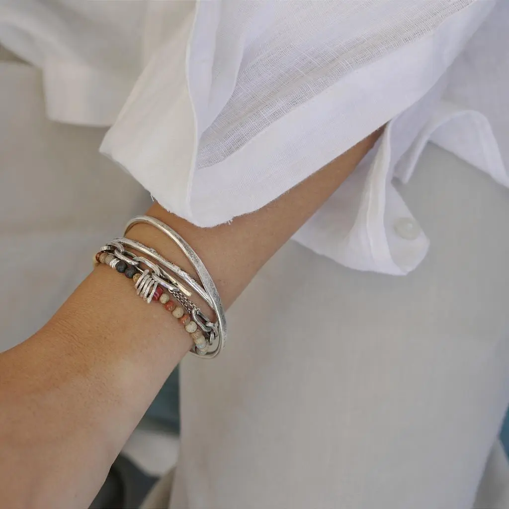 צמיד בעיצוב מינימליסטי אך בעל נוכחות, מושלם כמתנה לנשים שאוהבות תכשיטים עם סיפור.