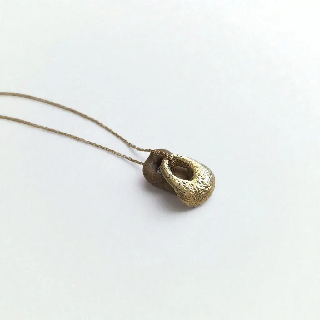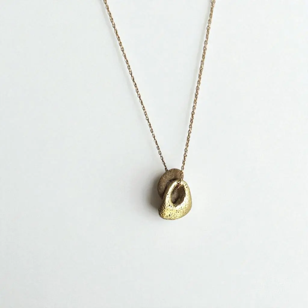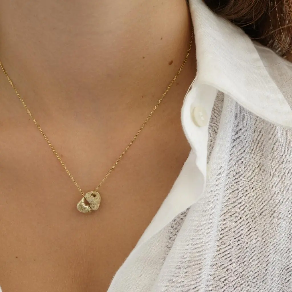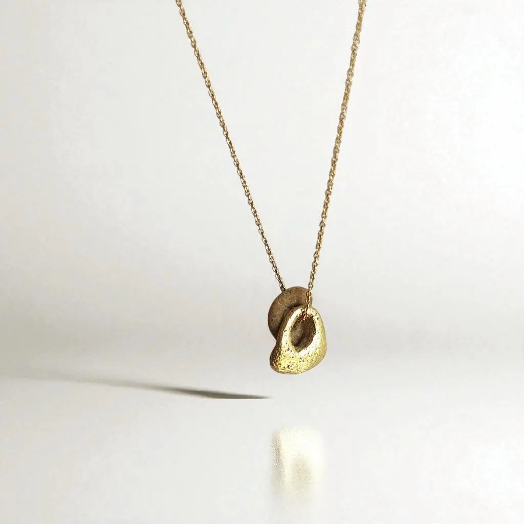 תליון זהב 14 קראט בעבודת יד בהשראת אבן שמצאתי בחוף,
